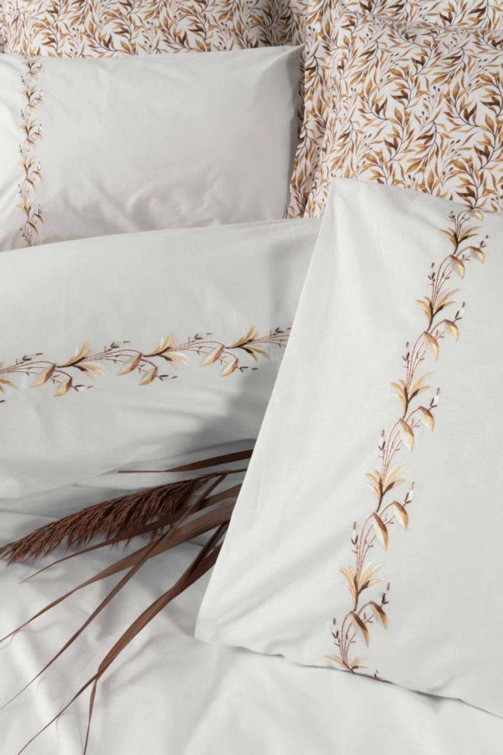 Nakışlı Çift Kişilik Saten Nev Takımı Riley Ekru
