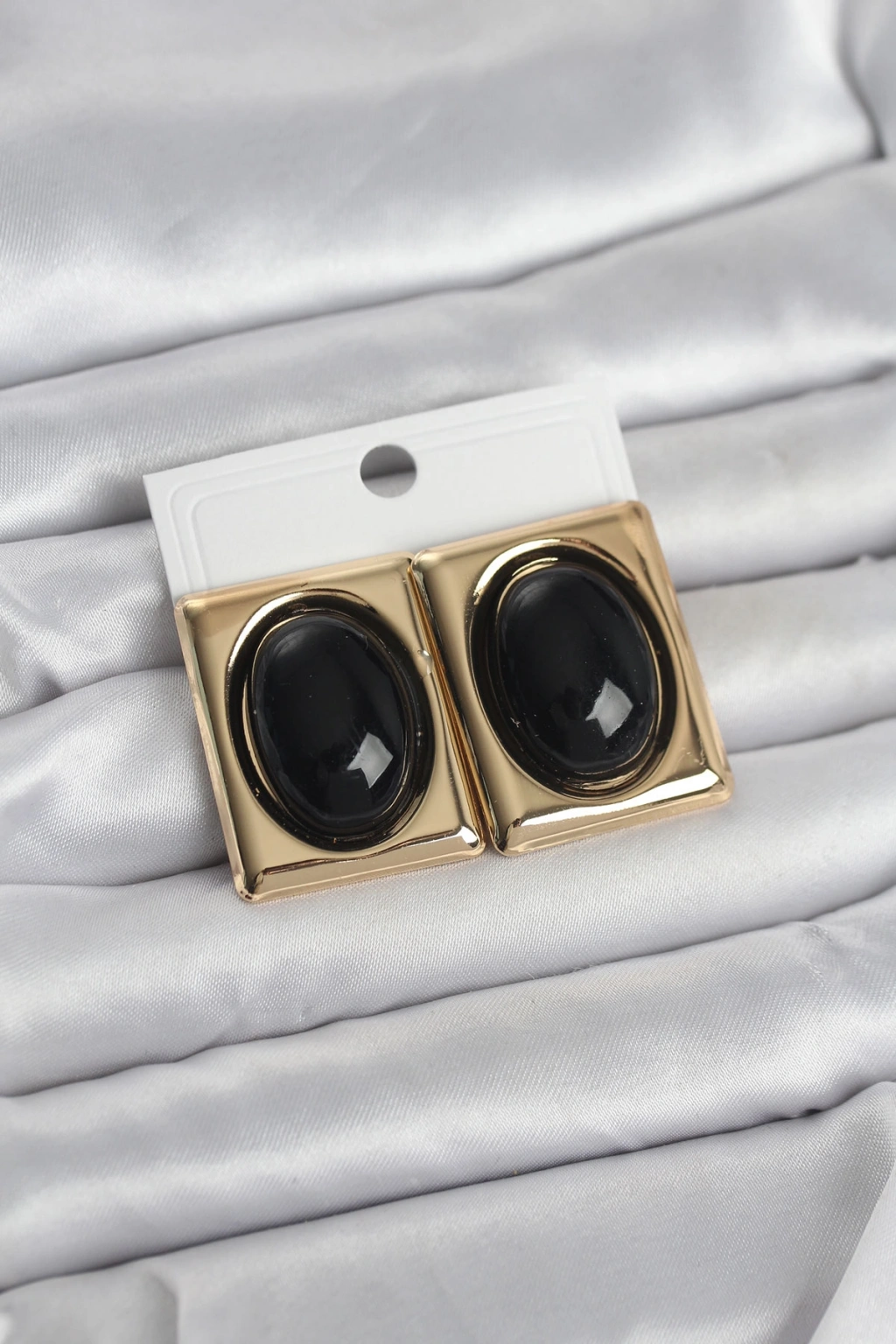 Siyah Kare Model Vintage Gold Renk Kadın Küpe