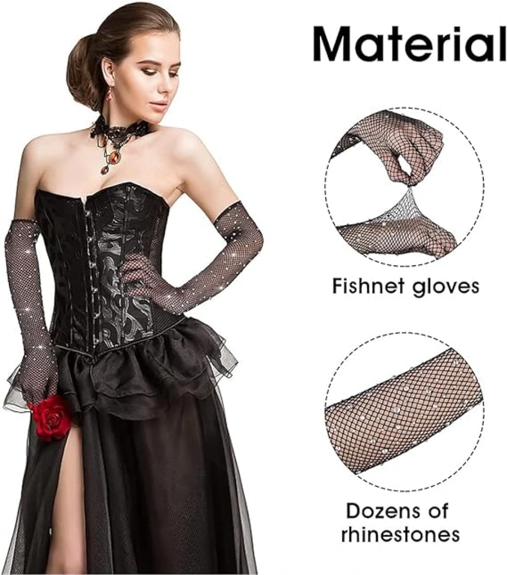 Siyah Renk İncili Elmas İşlemeli File Örgü Uzun Eldiven Eldiven Uzunluğu Yaklaşık 45 cm Renk : SiyahModel : File ÖrgüÖlçü : Yetişkinler için uygundurLikralı malzemeden üretilmiştir