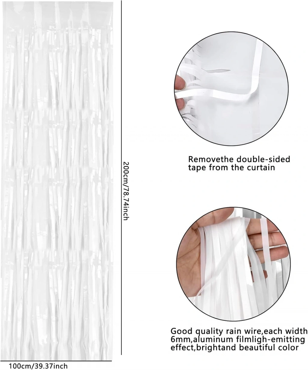 Soft Duvar ve Kapı Perdesi Beyaz 90x200 cmÜrün folyo malzemeden üretilmiştir.Boyutu : 90x200 cmÇift taraflı bant sayesinde kapı pervazlarına, duvara, perdeye yapıştırabilirsiniz.Masa arkasına fon yapmak için iki adet kullanmanızı tavsiye ederiz. Standart masalar 160 – 200 cm aralığındadır.İki adet kullanıldığında 180 cm eninde geniş bir süsleme alanına sahip olur.Son zamanlarda en ürünler arasında yer almaktadır. Işıltılı Püsküllü Folyo Kapı Perdesi Kullanım Alanları;Parti organizasyonlarınızda sadece kapı değil duvar, perde gibi alanları da süsleyebileceğiniz Işıltılı Beyaz Püsküllü Perde.Son dönemlerde oldukça popüler olan bu ürün daha çok ışıltılı arka fon olarak kullanılıp fotoğraf çekimlerinde daha güzel kareler oluşturmanıza yardımcı olur. İster kapı perdesi yapabilir, İsterseniz masa arkasına arka fon yapabilirsiniz.