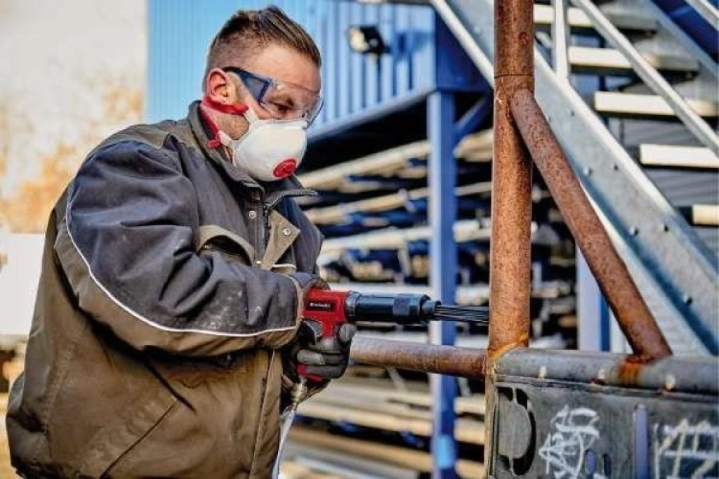 TC-PC 45 pnömatik keski çekiç seti, eşleşen iğne ölçekleyici ataşmanına sahip, ev içinde ve dışında yıkım ve yenileme işlerinde taş veya metal malzemelerle mücadele etmek için güçlü bir yardımcıdır.Güvenlik içinde çalışmak için, kullanıcı dostu bir tasarıma sahip, entegre kaymaz kauçuklu bir tutamağa sahiptir. Maksimum 6,3 bar çalışma basıncıyla alet, 1,2 joule’ye kadar darbe gücü için 4500 ^ dk-1’e kadar bir darbe hızı sağlar. Uç, altıgen torna aynası tarafından güvenli bir şekilde tutulur.İç çapı 9 milimetre veya daha fazla olan bir hortum kullanan pnömatik keski çekiç tarafından en yüksek performans sunulur. Kapsamlı özellikleri sayesinde, aletin potansiyel kullanımlarının neredeyse sonu tur. Bu nedenle teslimat kapsamı, sadece dört parçalı 120 milimetrelik keski setini değil, aynı zamanda pasın ve yüzeylerin temizlenmesine yardımcı olmak için uygun bir iğneli ölçekleyici ataşmanı içerir. Ayrıca sete 1 küçük yağ şişesi, 1 nipel ve 1 germe yayı dahildir. Pratik bir taşıma ve saklama çantası da sağlanır.