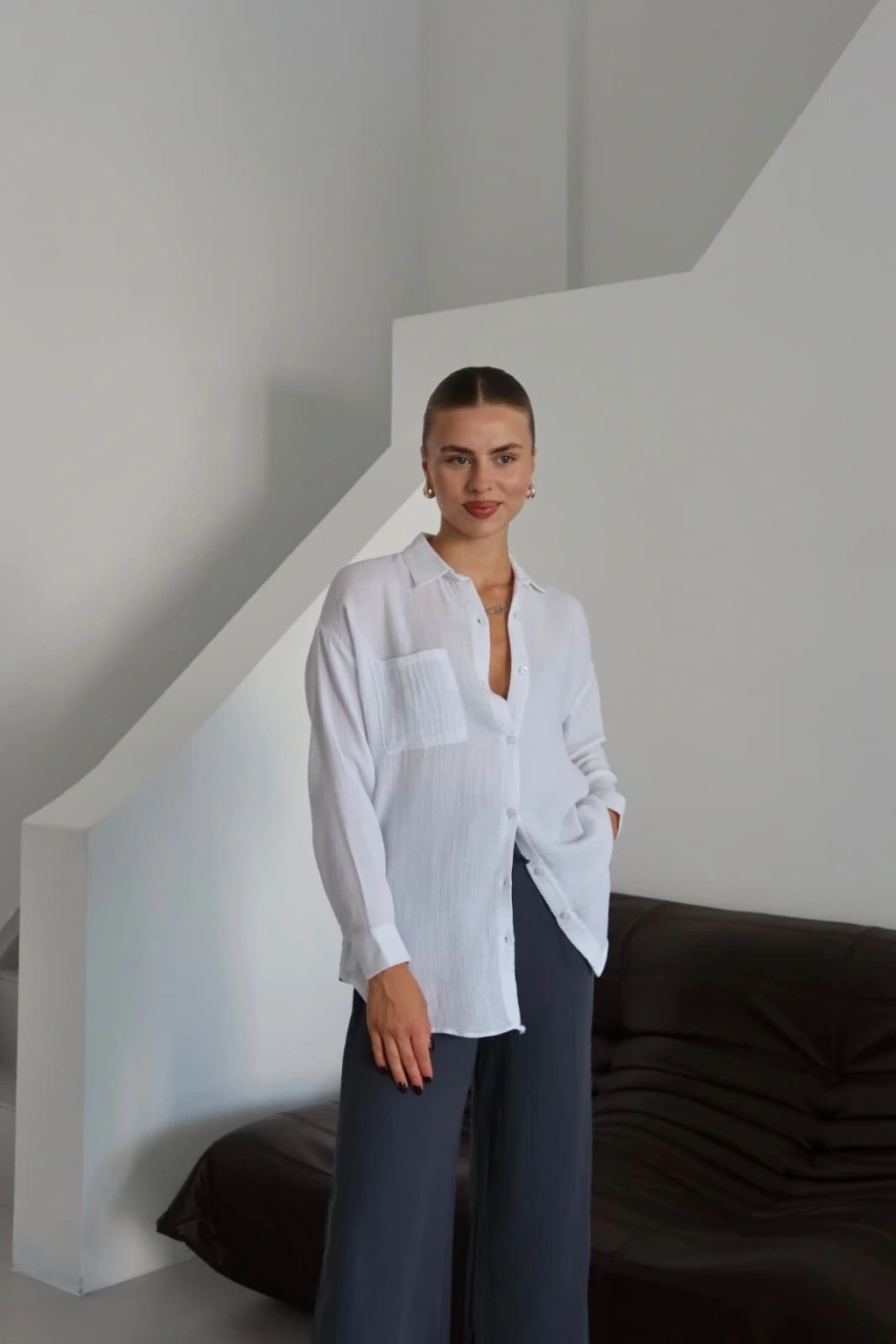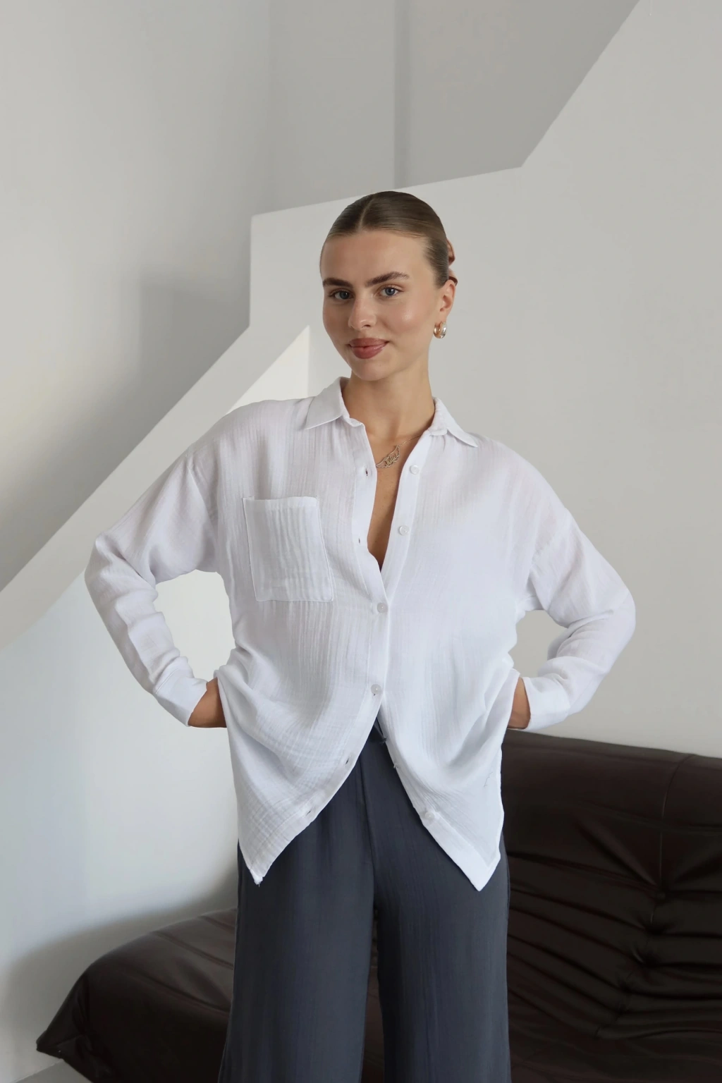 Tek cepli müslin gömlek beyaz pt--Beyazın sadeliği ve şıklığı ile tek cepli müslin gömlek, günlük şıklığınızı tamamlamak için ideal bir seçenektir. Ürün Özellikleri: Tek cepli tasarımıyla farklı bir hava tır. Rahat kesimi sayesinde gün boyu konfor sağlar. Kaliteli müslin kumaşı ile hafif ve nefes alabilir bir yapıya sahiptir. Yumuşak dokusu cildinizi hassasca kucaklar. Geniş beden seçenekleri ile her vücut tipine uyum sağlar. Günlük hayatta ya da özel davetlerde kolaylıkla kombinleyebileceğiniz beyaz tek cepli müslin gömlek, şıklığı ve rahatlığı bir arada arayan kadınların tercihi olacak.