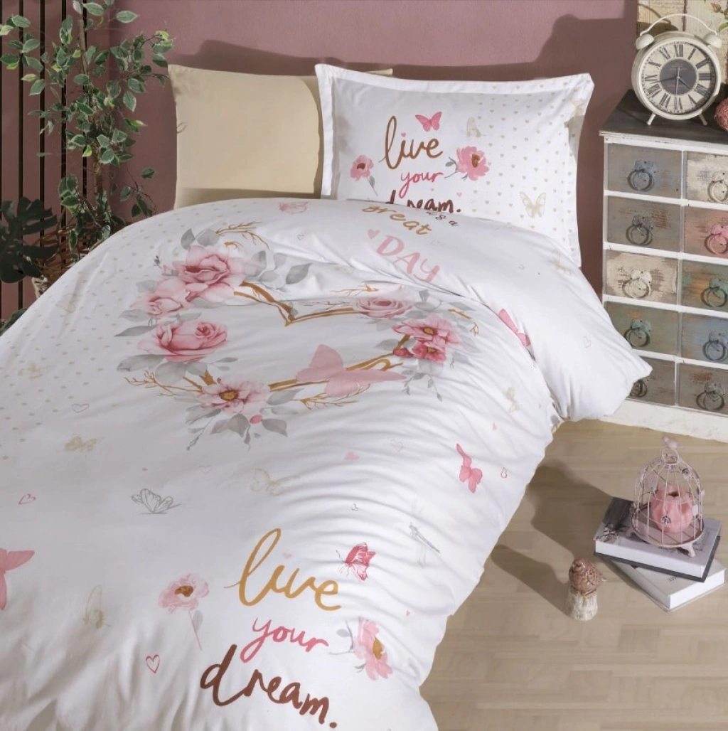 ÜRÜN ÖZELLİKLERİNev Takımı– Duvet cover: 160x220cmÇarşaf – Bedsheet :180x240cmYastık kılıfı - Pillow Case : 50x70cm (1 adet)Kumaş : %100 Pamuk57 TELYI TALİMATI-Elde veya çamaşır makinesinde 30 derecede ılık suda ters çevirerek yıkayınız.-Çamaşır suyu kullanmayınız-Düşük ısıda yıkayınız.-Islak bekletmeyiniz.-Düşük devirde tamburlu kurutucuda kurutabilirsiniz.-İlk yıda ürünü ters çevirerek yıkayınız.Bu tüm ürünler için geçerlidir ve böylelikle ürünün ömrü uzamış olur.