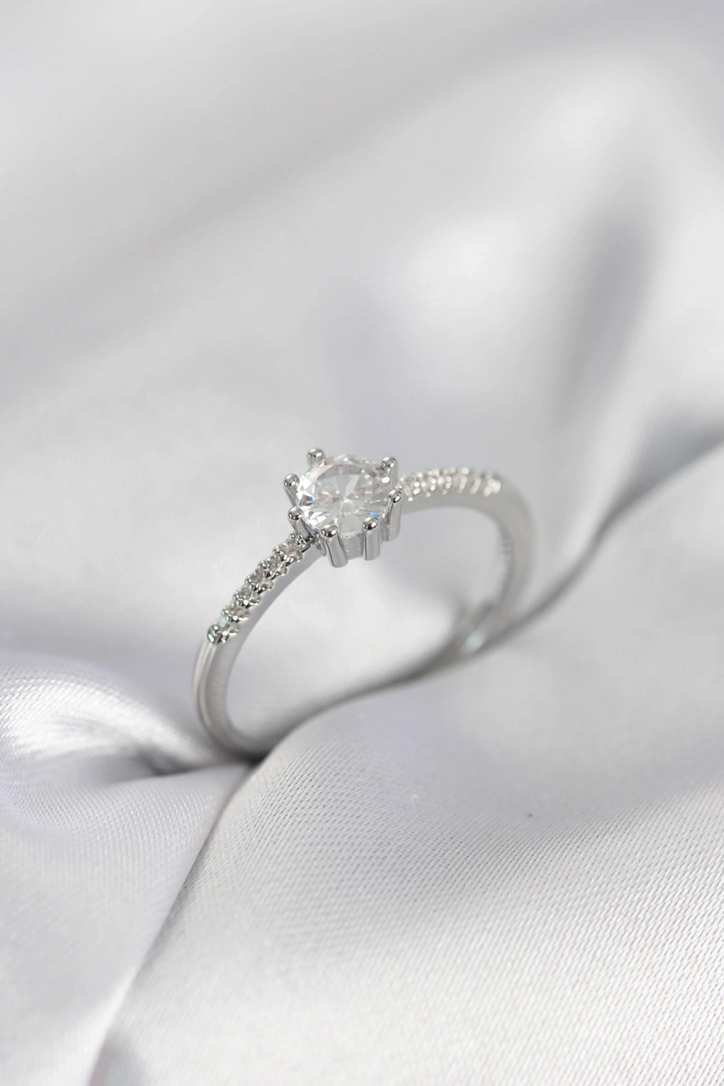 Tek Taş Model Gümüş Renk Zirkon Taşlı Kadın Yüzük