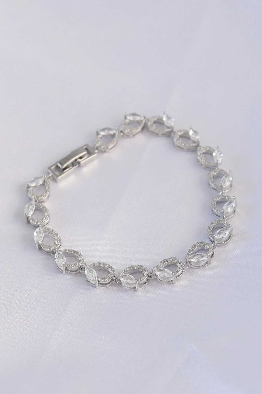 Vip Seri Pirinç Zirkon Taşlı Gümüş Renk Arpa Model Bileklik