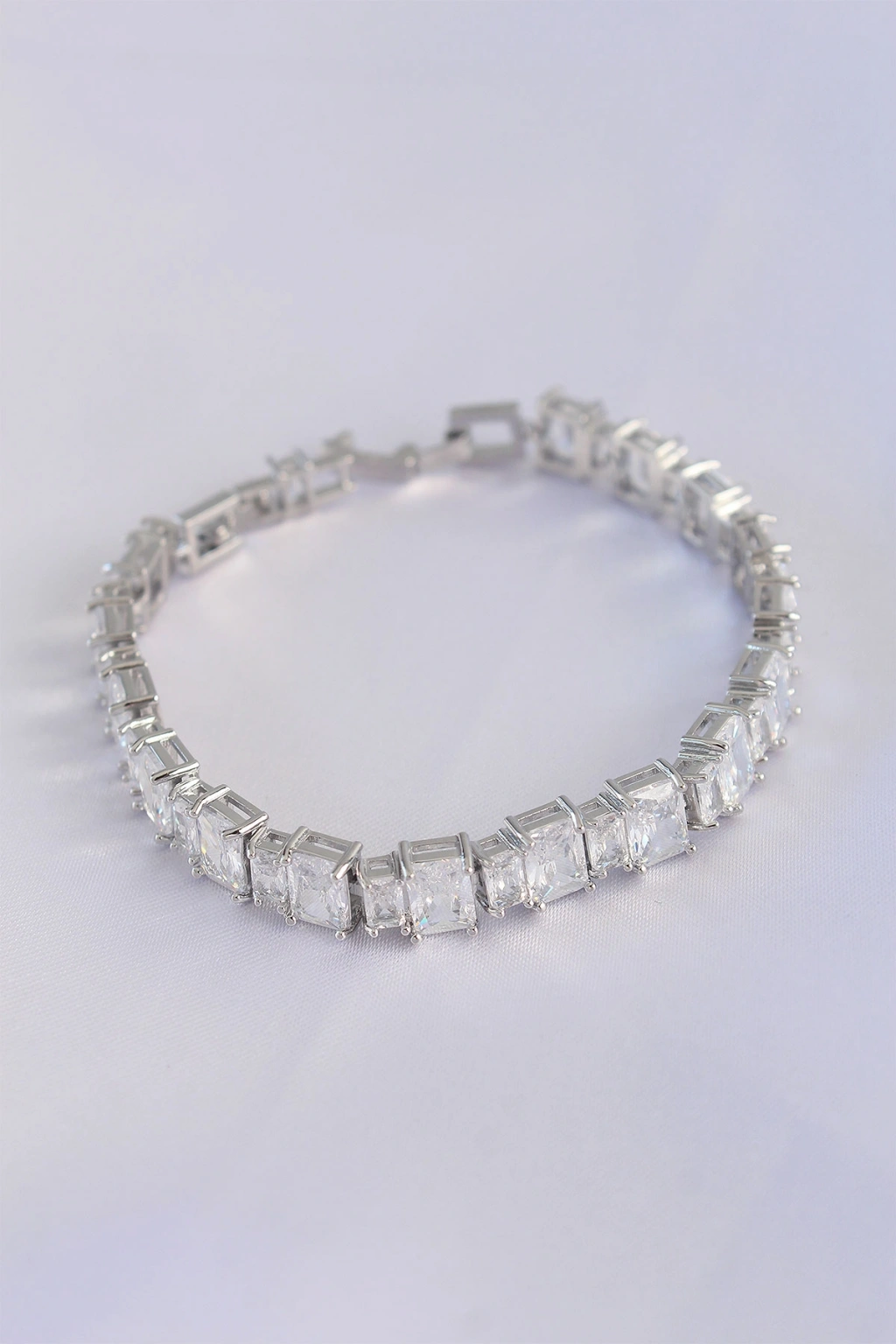 Vip Seri Pirinç Zirkon Taşlı Gümüş Renk Baget Su Yolu Model Bileklik