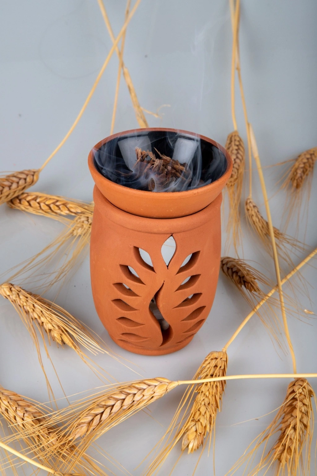 Yaprak Model El Yapımı Çömlek Buhurdanlık TütsülükKaseli El Yapımı Çömlek Buhurdanlık Tütsülük Ürünlerimiz tamamen el yapımıdır.Ürünümüz 2 parçadan oluşuyor. Üst kase tütsülük ve buhurdanlık olarak kullanılmaktadır.Üst kasede tütsü kömürü ile tütsü otu yakılabilmektedir.Alt kısım mumluk olarak kullanılmaktadır. Isı yukarıçıksın diye özel form ve modelleme yapılmıştır.Ürünlerimiz hem mumluk hem buhurdanlık hemde tütsülük olarak kullanılmaktadır.Ürünlerimiz kurşun içermez. İsterseniz alt kısmıistediğiniz renge boyaya bilirsiniz.Kase Kısmı Bulaşık makinesinde yıkanabilir.Aromaterapi yağlarıyla kullanılır, altına mum konur, üstüne isteğinize göre aromaterapi yağları,adaçayı veya tütsü koyabilirsiniz üst kısım kasesidir .Diğer Aksesuarlar dekor amaçlı kullanılmış olup, paket içeriğine dahil değildir.Ürün Ölçüleri : yaklaşık olarak 12 x 8 cm dirüst kasesi (Kase içi sarı, mavi, siyah renklerdedir gönderimlerde farklılık gösterebilir)Paket İçeriği : 1 Adet Buhurdanlık