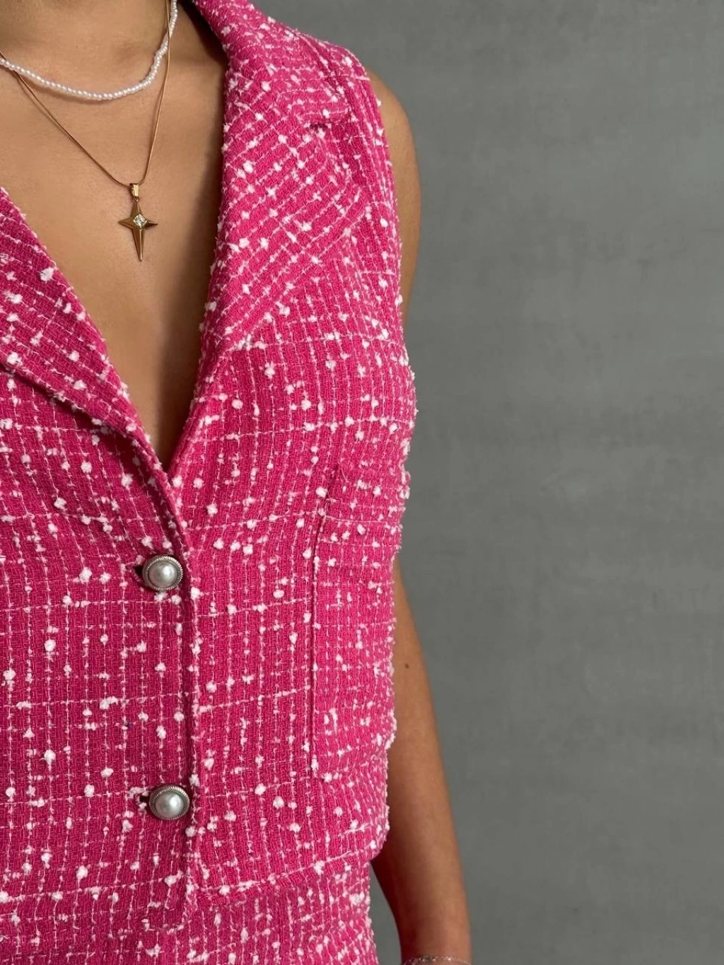 Yelekli şort takım pembe--Pembe Yelekli Şort Takım ile feminen ve şık bir görünüme sahip olmaya hazır mısınız? - Pembe renkli yeleğiyle dikkat çeken şort takım, yaz aylarının vazgeçilmezi olacak. - Şık detaylarıyla hem günlük kullanıma hem de özel davetlere uygun bir seçenek sunar. - Yüksek kaliteli kumaşı sayesinde konforlu bir giyim deneyimi sunar. - Hem spor hem de şık kombinler oluşturabileceğiniz çok yönlü bir parçadır. - Kadın Giyim kategorisinde yer alan bu takım, gardırobunuzun vazgeçilmezi olmaya aday!