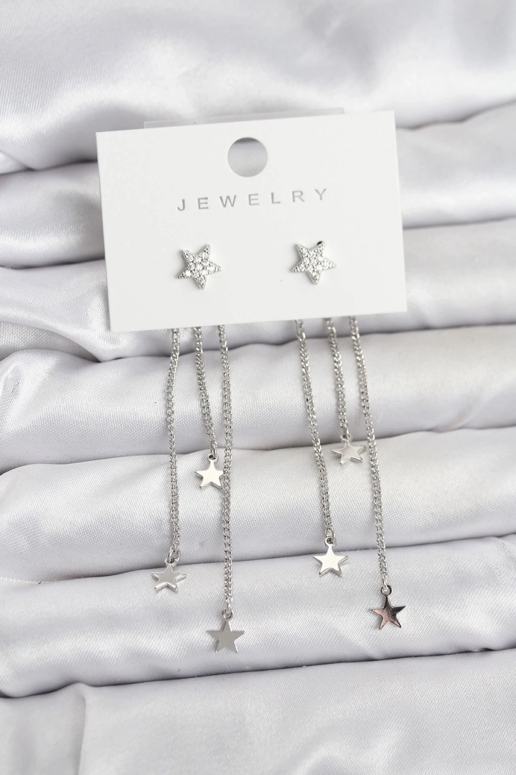 Yıldız Model Gümüş Renk Pirinç Sallantılı Kadın Küpe