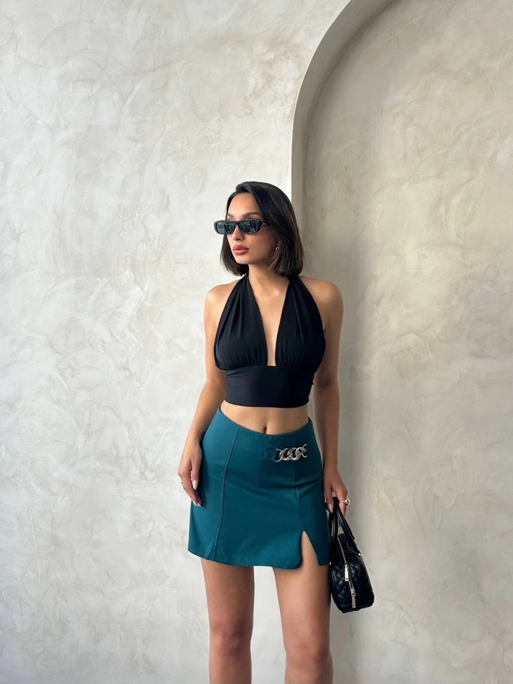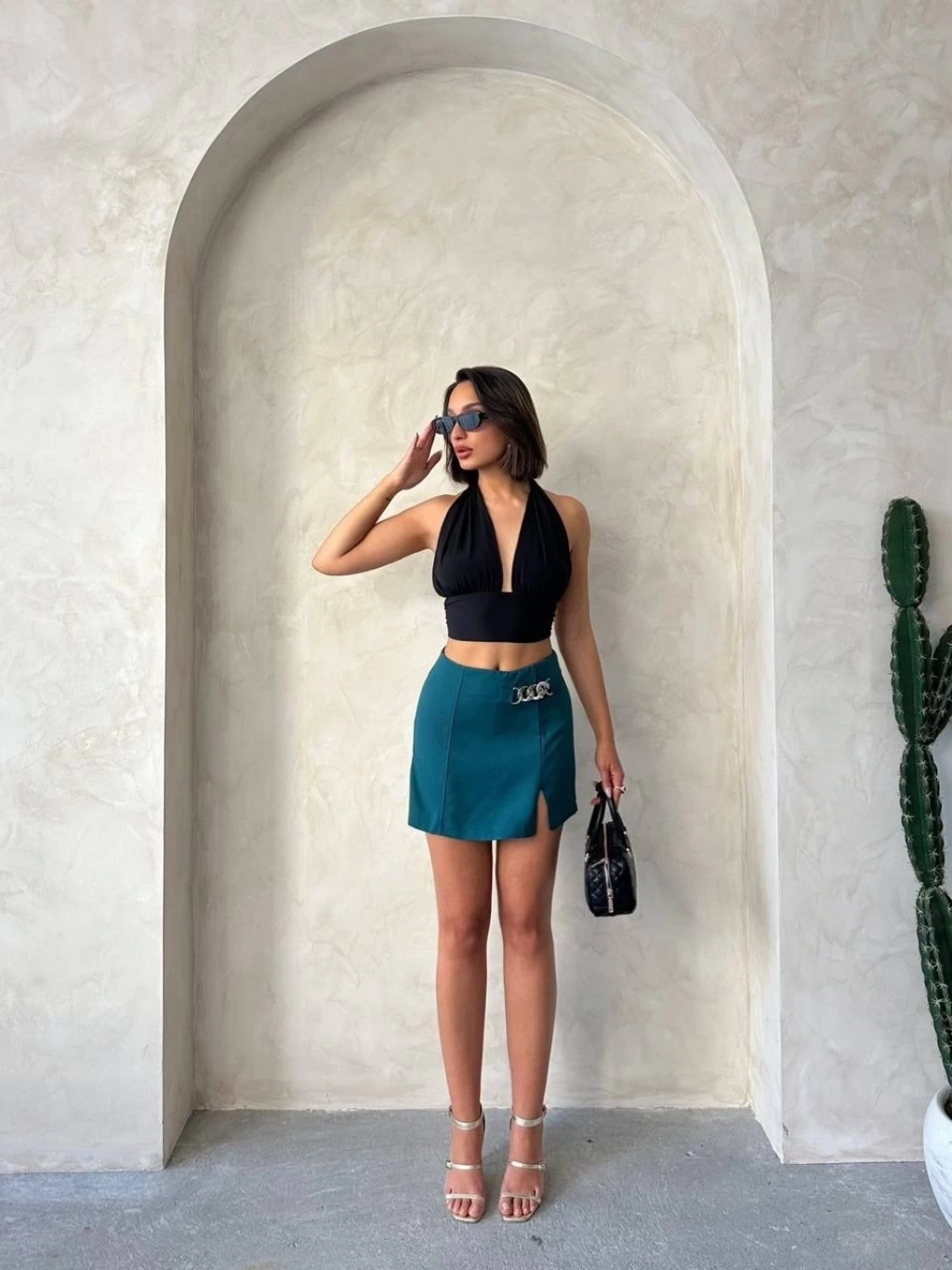 Zincirli şort etek petrol yeşili s24676--Sezonun trend parçalarından Zincirli Şort Etek S24676, şıklığı ve rahatlığı bir arada sunuyor. - Yüksek bel tasarımı ile vücudu saran, konforlu bir kesime sahiptir. - Zincir detaylarıyla hareketlendirilmiş, modern ve şık bir görünüm sunar. - Kaliteli kumaşı sayesinde uzun ömürlü ve dalıdır. - Günlük kullanıma uygun olmasının yanı sıra özel günlerde de şıklığınızı tamamlar. - Farklı kombinlerle kolayca uyum sağlak tarzınıza farklı bir hava katar. - Kadın Giyim > Şort kategorisinde yer alan bu ürün, gardırobunuzun vazgeçilmez parçalarından biri olmaya aday.