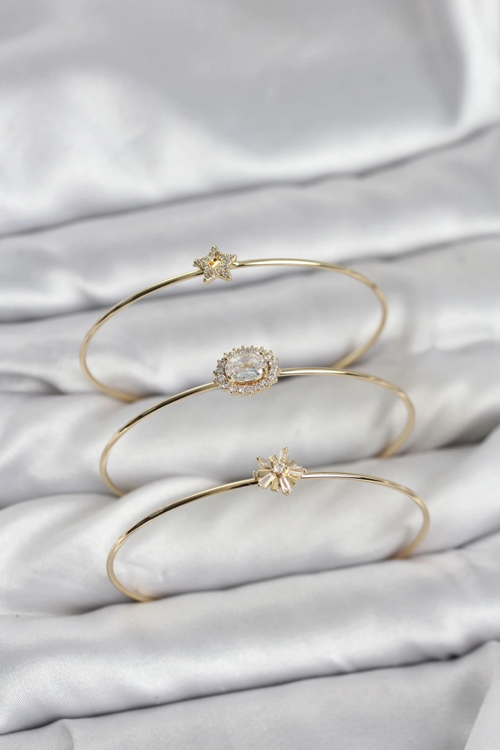 Zirkon Taşlı Gold Renk Tek Taş Model 3'lü Kadın Bileklik Kombini